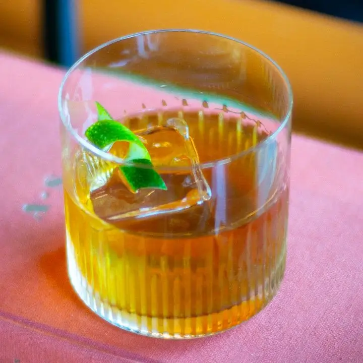 Priťahuje ju bohaté vibrácie Art Deco v Rosine vo vnútri Palazzo v benátskom hoteli, ale stará módna ponuka ho tam venovala. On Rieka Kentukky , Iba jeden zo siedmich riffov, zahŕňa Buffalo Trace Bourbon, Tempus Fugit Crème de Cocoa a niektoré stopy broskyňovej horkej, aby sa zvýšila trochu sladkosti. Všetko sa mieša v šálke s dvojitým vyblednutím s dotykom citrónu.