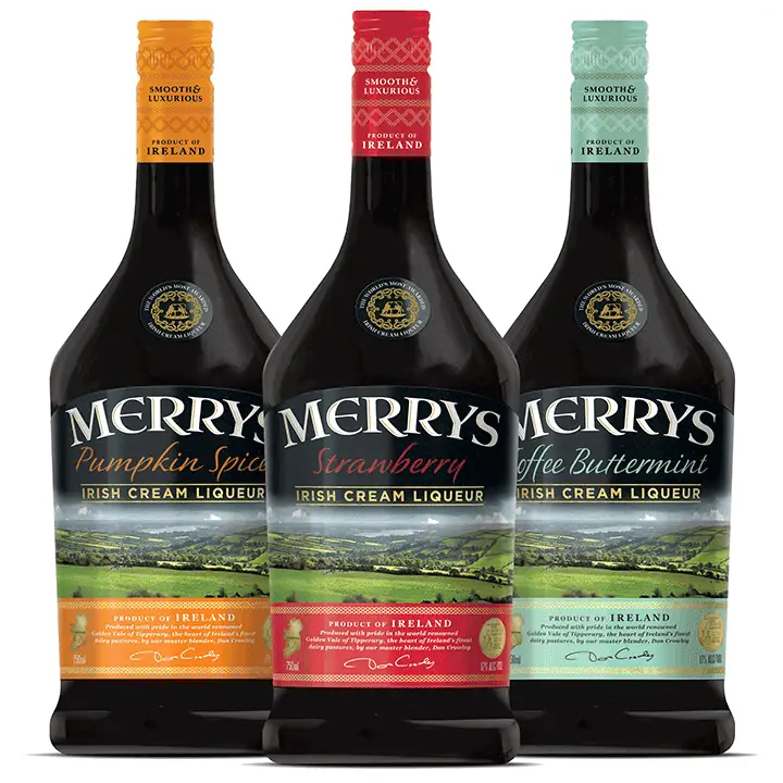 Irish Cream of Merrys produkuje najviac ocenený írsky producent s krémovými alkoholmi s viac ako 120 oceneniami.