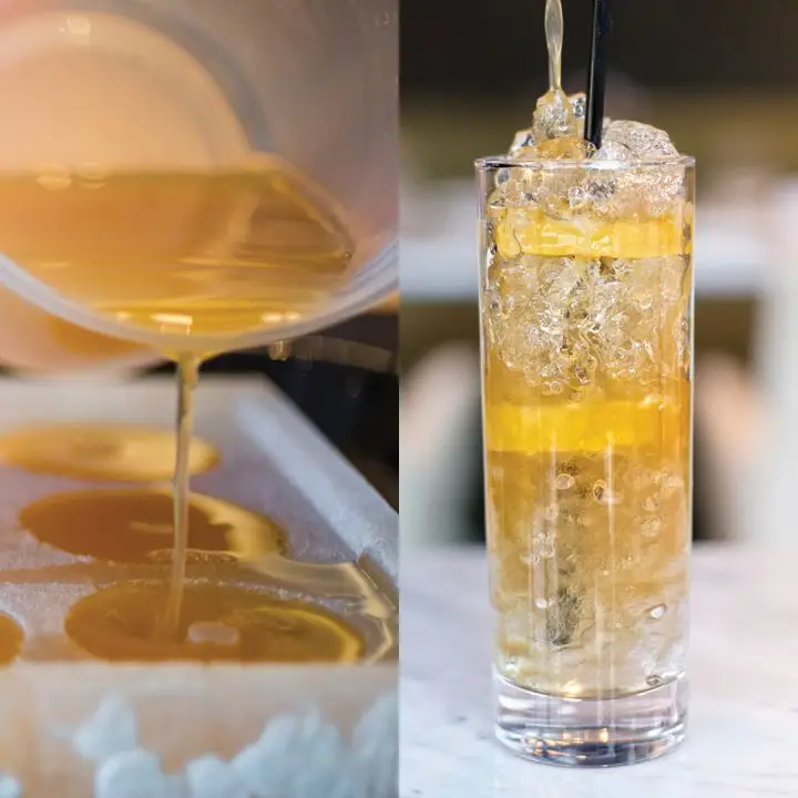 Clared mango šťava je zamrznutá vo valcových kocky používaných v ArtScience's S Wayne Chinnock